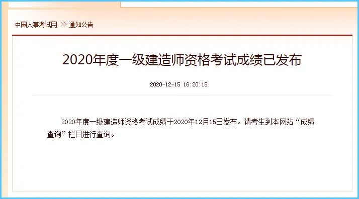 12月15日 一级建造师成绩查询入口开通 2020年参加考试的考生赶快查分